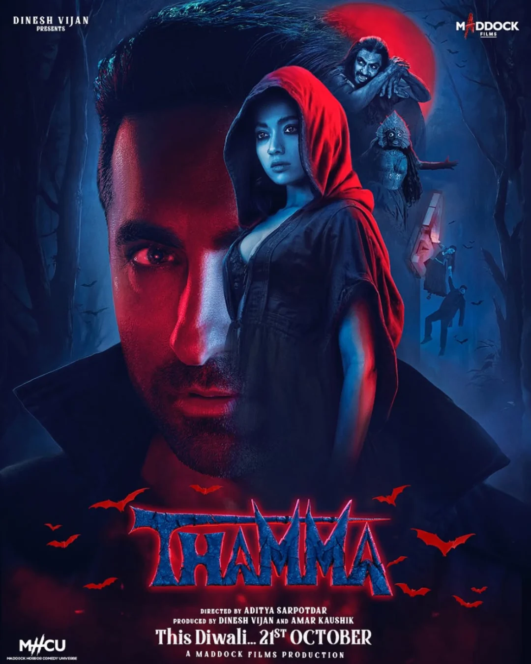 दिवाली के मौके पर सिनेमाघरों में धमाका करते हुए आयुष्मान खुराना, रश्मिका मंदाना और नवाजुद्दीन सिद्दीकी की हॉरर-कॉमेडी फिल्म ‘Thamma’ रिलीज हो चुकी है